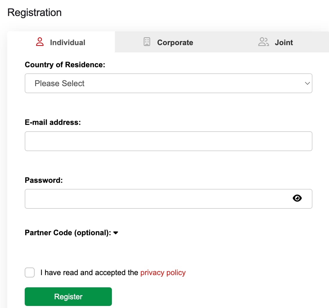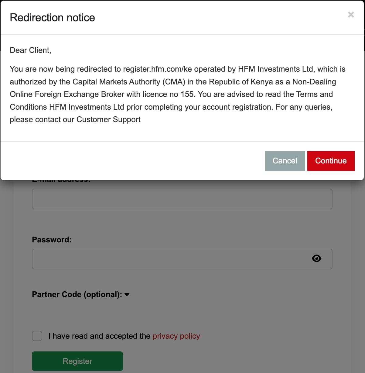 If you are in a country with a local regulation eg residents of Kenya, you will be redirected to a different website to register under the regulations.